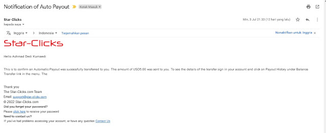 PAYOUT  pertama dari star-clicks tanggal 24 Juni 2022, apakah yang pertama, sekaligus yang terakhir ???