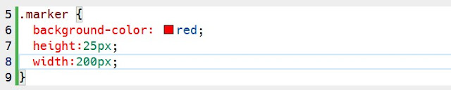 Selanjutnya, hapus properti background-color dan nilainya dari aturan CSS .marker.