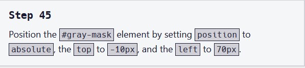Posisikan elemen #gray-mask dengan mengatur position ke absolute, atas ke -10px, dan kiri ke 70px.